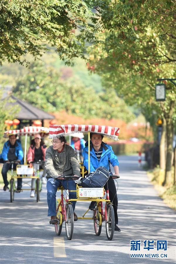10月27日,在苏州市吴中区东山镇三山村,游客在环岛骑行。 新华社记者 王化娟 摄
