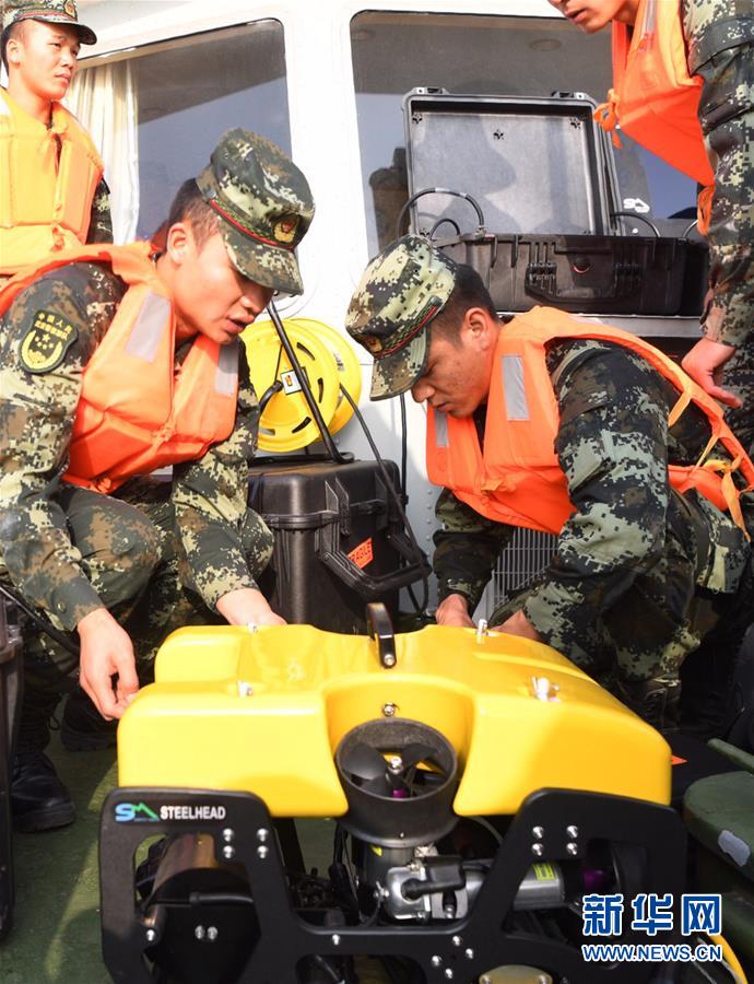 10月28日,武警重庆市总队船艇支队队员在操作水下机器人系统进行搜救。