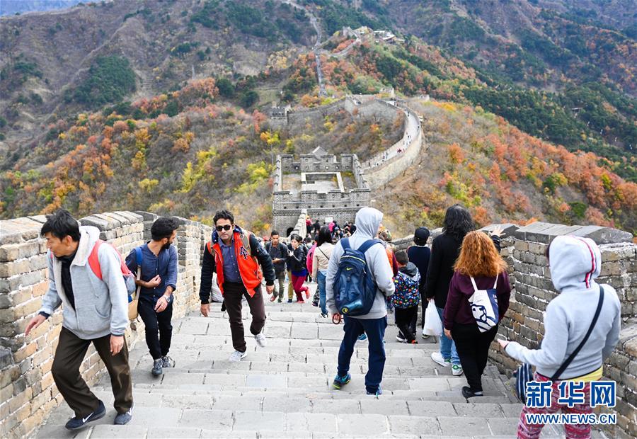 金秋时节,北京慕田峪长城层林尽染,壮观迷人,吸引不少游客前来游览。