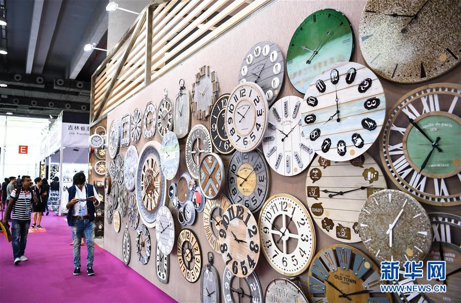参会者走过第124届广交会第二期上的钟表装饰展区(10月23日摄)。 新华社记者 邓华 摄
