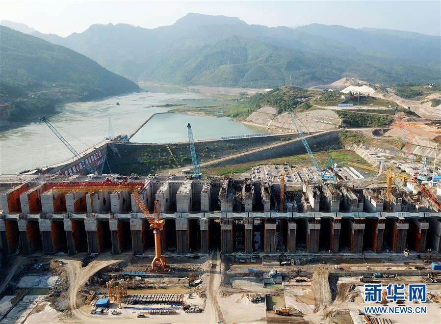 这是正在建设中的大藤峡水利枢纽工程(10月28日无人机拍摄)。 大藤峡水利枢纽工程坝址位于珠江流域西江水系黔江河段大藤峡峡谷出口处,是珠江流域防洪控制性枢纽工程。目前,该水利枢纽工程的左岸主体工程各标段建设正在稳步推进。 新华社记者 魏海 摄