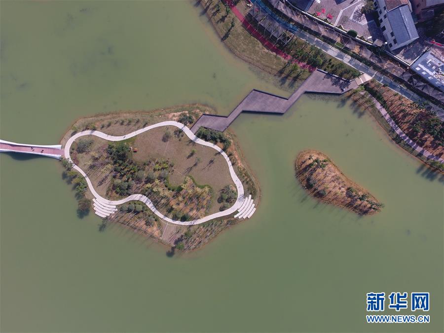 空中俯瞰长沙后湖(10月29日无人机拍摄)。 近日,湖南长沙后湖水环境综合整治工程全面完工,沿湖生态环境旧貌换新颜,成为市民游客休闲散步的好去处。 新华社记者 龙弘涛 摄