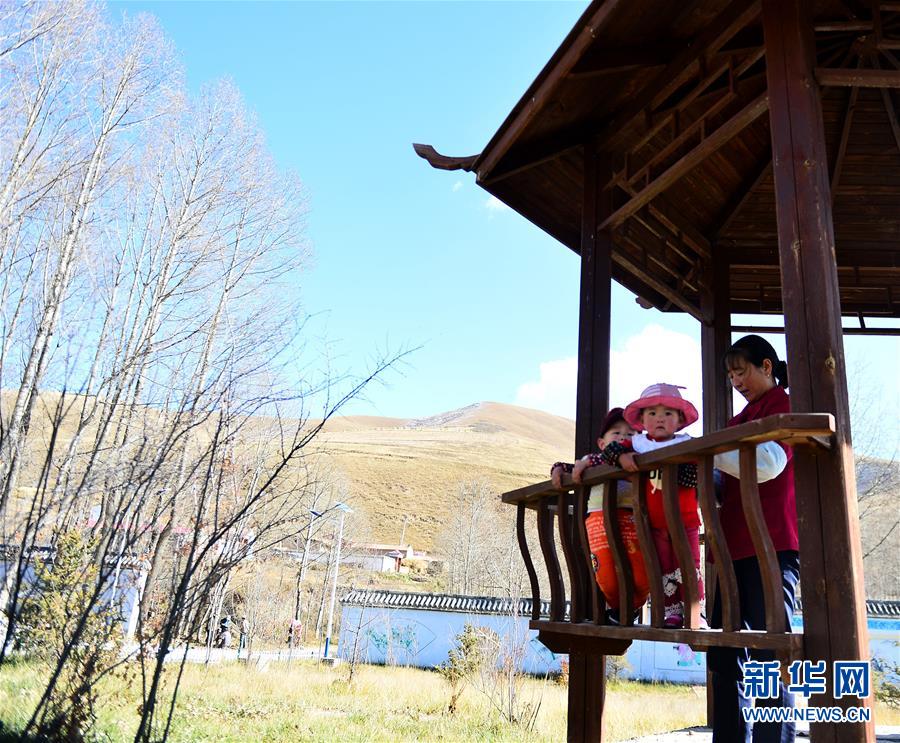 门源县东川镇尕牧龙下村村民在村里新建的文化广场休憩(10月25日摄)。 新华社发(张龙摄)