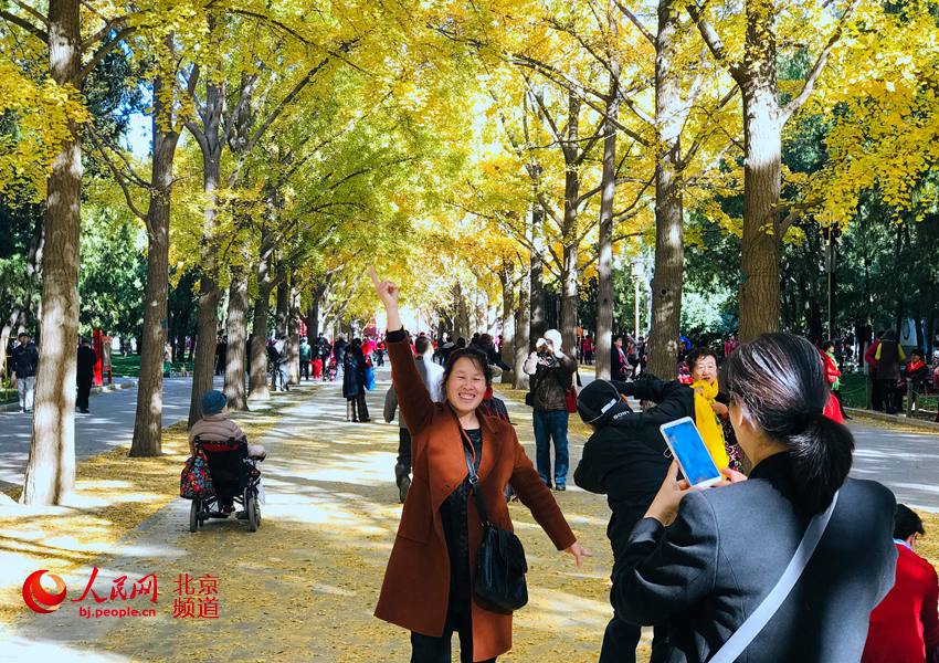 地坛公园赏银杏正当时,市民纷纷用镜头记录京城秋色。人民网 董兆瑞 摄