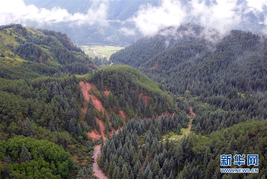 这是在张掖市肃南裕固族自治县境内拍摄的祁连山景色(8月29日无人机拍摄)。新华社记者 范培珅 摄