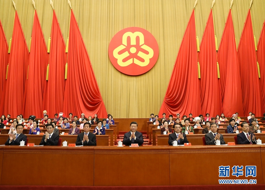 10月30日,中国妇女第十二次全国代表大会在北京人民大会堂开幕。习近平、李克强、栗战书、汪洋、王沪宁、赵乐际、韩正等在主席台就座,祝贺大会召开。 新华社记者 鞠鹏 摄