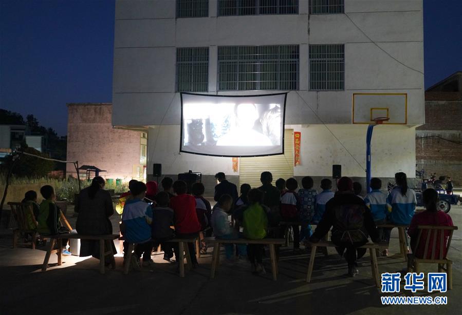 10月30日,宽田乡山下村的百姓在观看曾纪连为他们放映的电影。 新华社记者 胡晨欢摄