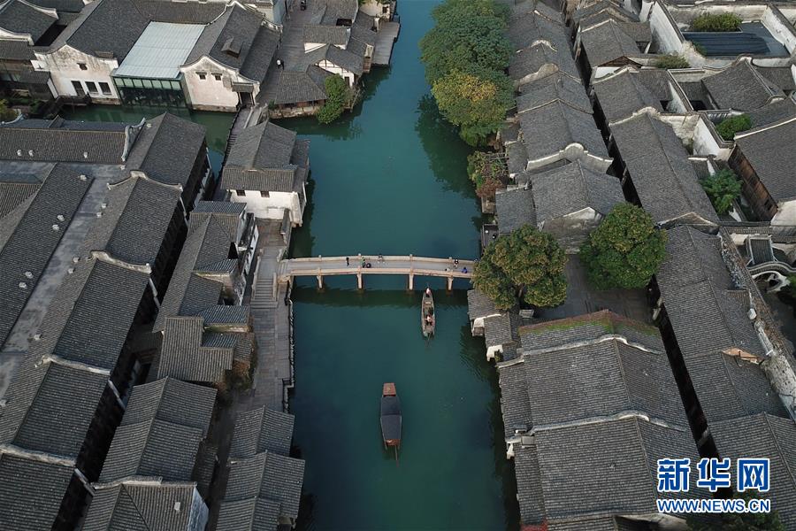 这是10月31日无人机拍摄的浙江乌镇西栅景区。 第五届世界互联网大会将于11月7日至9日在浙江乌镇举行。 新华社记者 黄宗治 摄