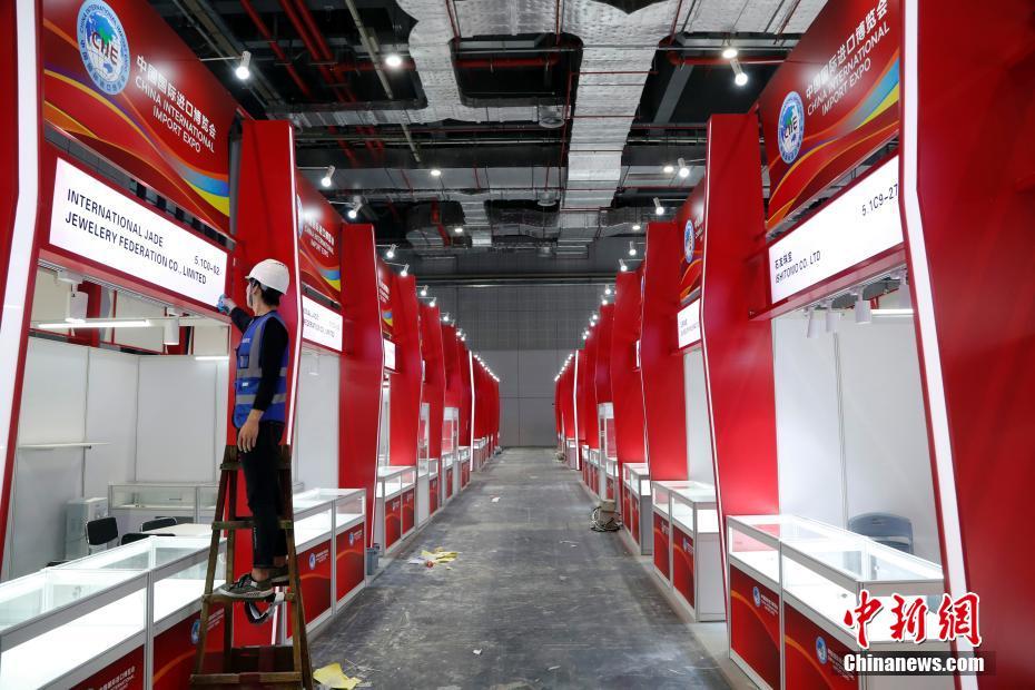 11月1日,进博会各场馆展台布置进入收尾阶段。首届中国国际进口博览会将于11月5日至10日在上海举行,来自130多个国家和地区的3000多家企业前来参展。中新社记者 汤彦俊 摄