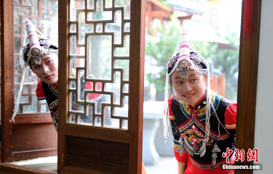 10月24日,浙江丽水市景宁大均村,身着畲族服饰的女孩站在窗外“偷”观“畲族小伙”娶新娘。丽水地处浙江省西南部,辖莲都区、龙泉市、景宁等9个县(市、区)。景宁大均村历史文化悠久,自然、人文景观佳丽。大均村是国家4A景区,也是体验民族风情和传统民俗所在地。畲乡之窗景区建立以来,篝火晚会、泼水节、畲族婚嫁表演、渡亲节等系列民族体验活动,成为大均村旅游的招牌,吸引了越来越多的游客前来体验。中新社记者 张茵 摄