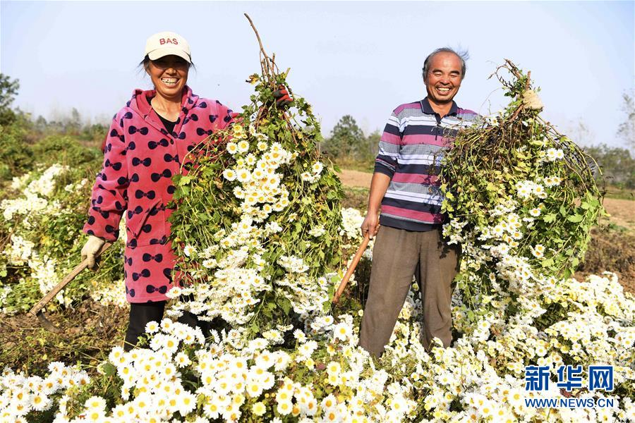 11月1日,安徽省亳州市谯城区谯东镇辛庄村菊农在采收菊花。 新华社发(刘勤利 摄)
