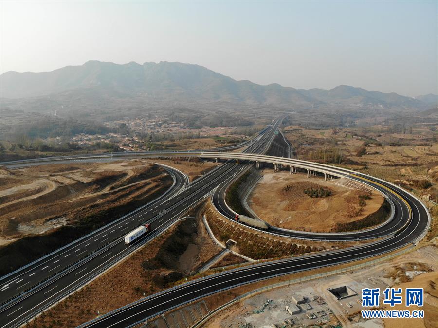 11月1日,车辆行驶在潍日高速公路五莲县松柏镇段(无人机拍摄)。 当日,潍(坊)日(照)高速公路建成通车。据介绍,潍日高速建成通车后,潍坊与日照两地行车时间由3小时缩短到1.5小时。 新华社发(李青 摄)
