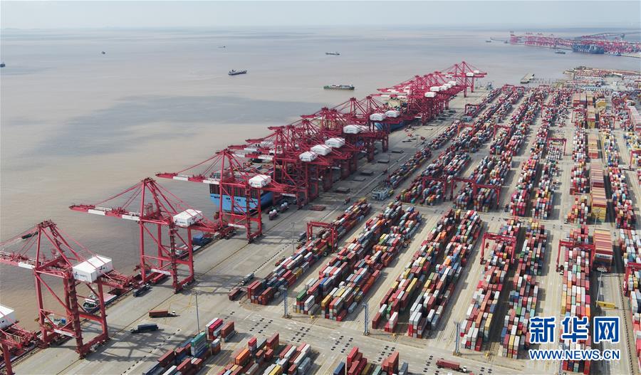 这是航拍的上海洋山港集装箱码头(11月1日摄)。 11月5日,首届中国国际进口博览会将在上海拉开帷幕。作为全球首个以进口为主题的博览会,中国国际进口博览会为全球瞩目和期待。 党的诞生地“中共一大会址纪念馆”、具有自主知识产权的“国产大飞机C919”、 全球最大的自动化集装箱码头“上海洋山深水港四期自动化集装箱码头”、亚洲最大自航绞吸挖泥船“天鲲号”等都在上海这座城市孕育。 目前,上海已进入“进博时间”,这座东方魅力之都以其大美拥抱中国国际进口博览会,喜迎八方宾朋。 新华社记者丁汀摄