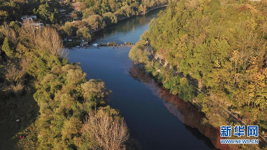 这是11月3日无人机拍摄的贵阳市花溪国家城市湿地公园黄金大道。 新华社记者 欧东衢 摄