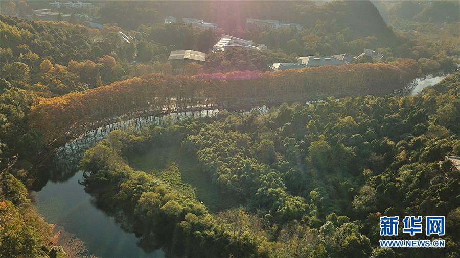 这是11月3日无人机拍摄的贵阳市花溪国家城市湿地公园黄金大道。 新华社记者 欧东衢 摄
