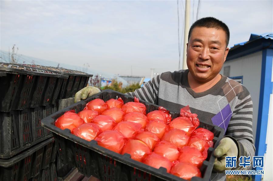 牡丹江海林市海林镇蔬菜村村民黄翔展示即将出口俄罗斯的西红柿(10月22日摄)。 新华社记者 王建威 摄