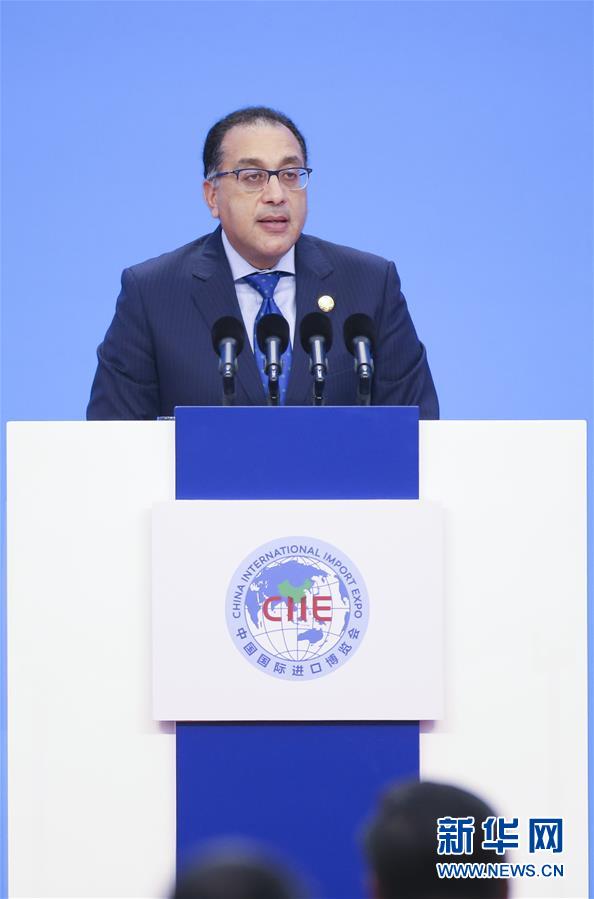 11月5日,首届中国国际进口博览会在上海开幕。这是埃及总理马德布利在开幕式上致辞。 新华社记者姚大伟摄