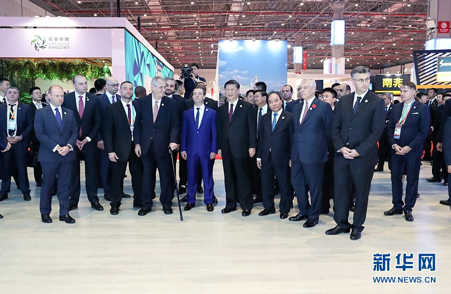 习近平同出席首届中国国际进口博览会的外国领导人共同巡馆
