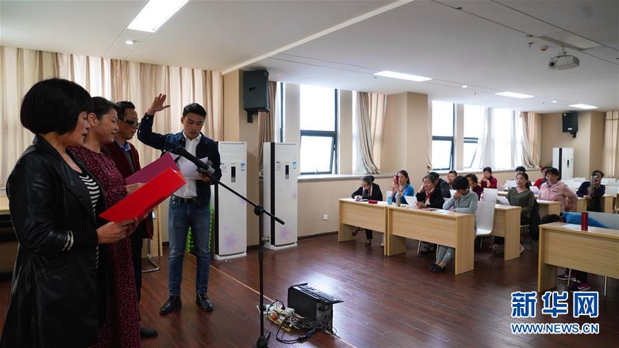 11月5日,市民在南昌市东湖区文化馆内学习朗诵。新华社记者 胡晨欢 摄