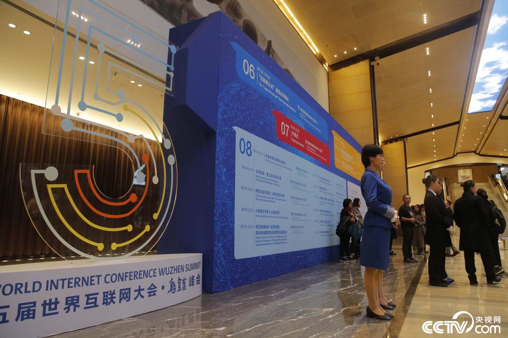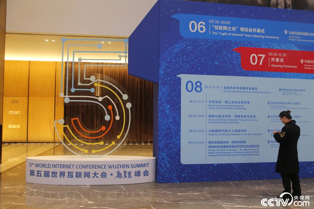 今年的互联网大会已是第五届,入口处醒目的议程提示。