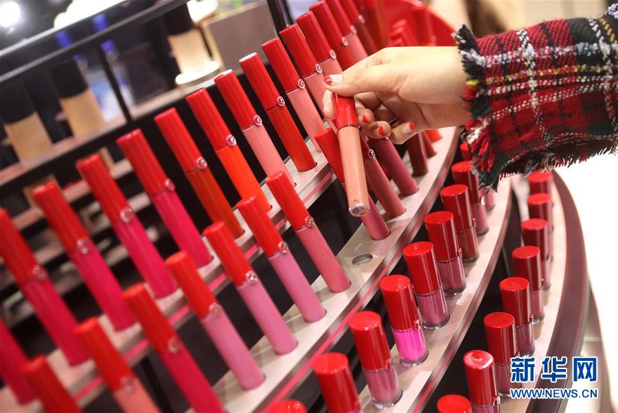 11月6日,参观者在欧莱雅集团展台试用化妆品。 新华社记者 陈飞 摄