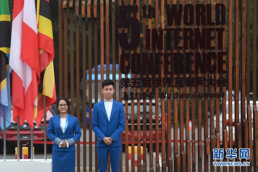 11月6日,来自浙江外国语学院的大学生志愿者在乌镇迎接参会嘉宾。 新华社记者黄宗治摄