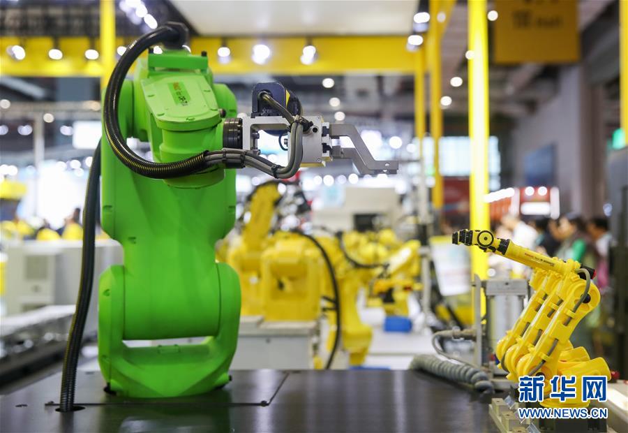 11月6日,日本发那科公司的协作机器人在展台上展出。 新华社记者 丁汀 摄