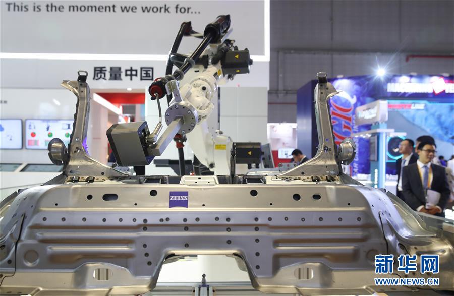 11月6日,德国卡尔蔡司公司的一架精密检测机器人在展台上展出。新华社记者 丁汀 摄