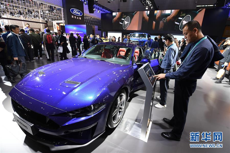 11月7日,人们在进博会美国福特公司展台参观一款MUSTANG跑车。新华社记者 沙达提 摄