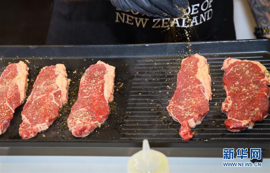 11月7日,厨师在进博会上现场烹制新西兰银蕨农场出产的牛排。新华社记者 刘大伟 摄