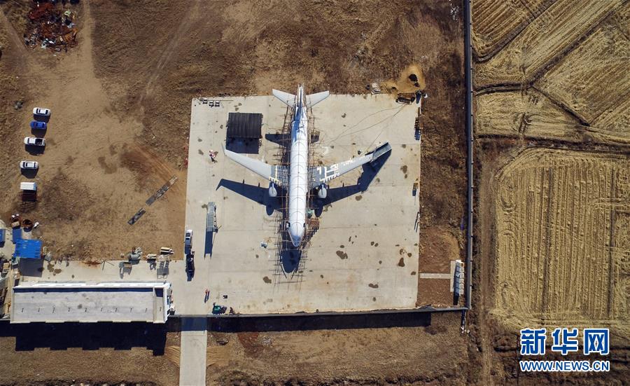 这是11月10日在辽宁开原老城街道前三台子村拍摄的朱跃团队手工制造的“飞机”(无人机拍摄)。 新华社记者 杨青 摄