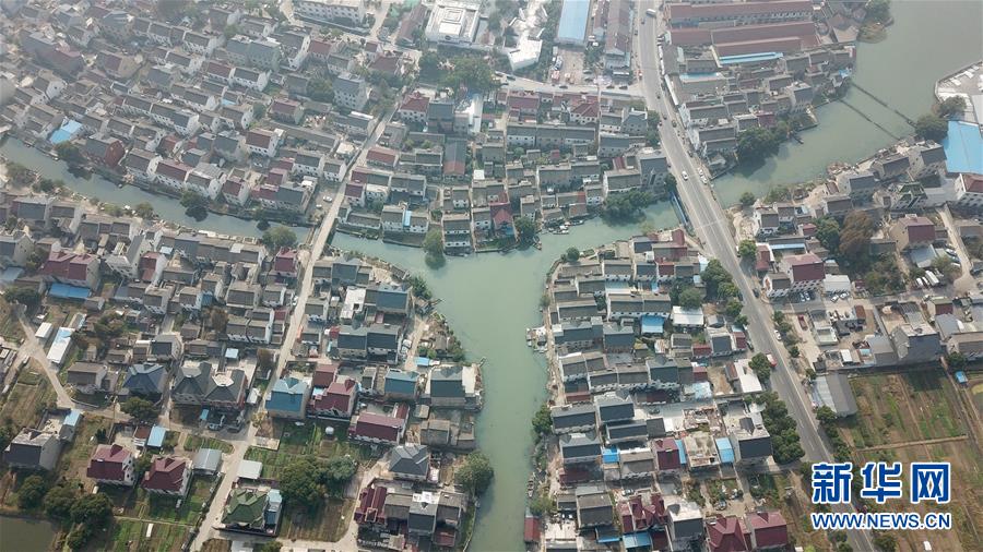 苏州市吴江区七都镇开弦弓村村貌(10月23日无人机拍摄)。近年来,开弦弓村形成了化纤纺织、针织衫编织和水产养殖三大产业,2017年村集体收入268万元,农民人均可支配收入3万多元。