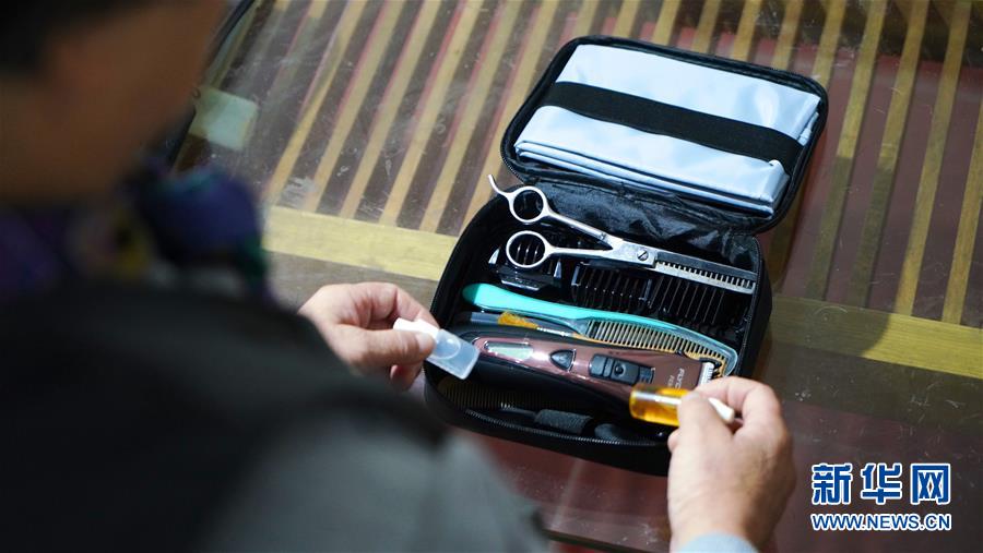 11月13日,邹勤敏在家中准备理发用的工具。