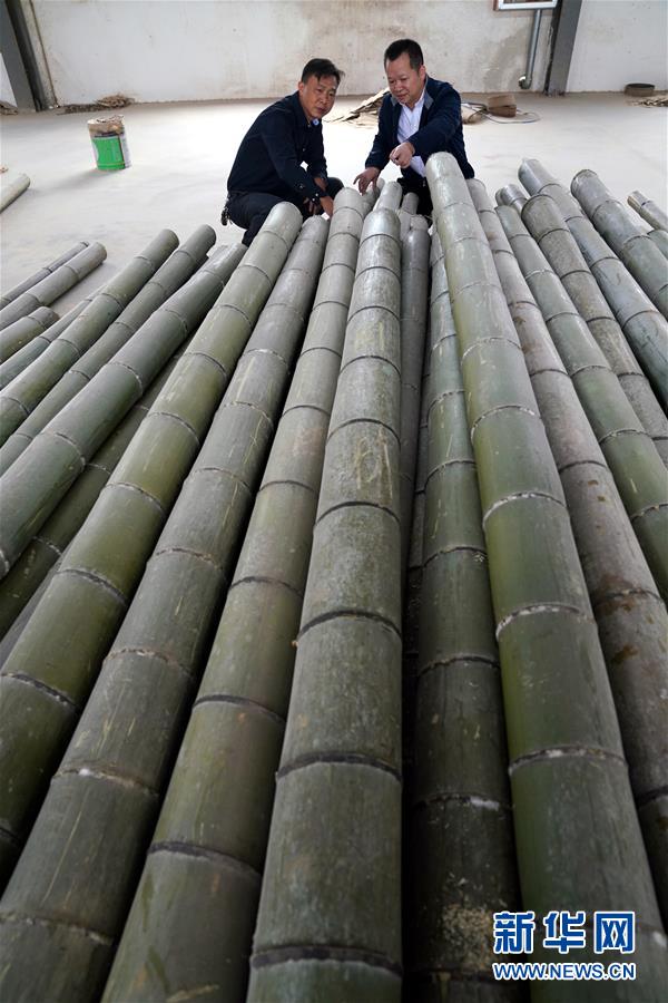11月13日,罗小平(右)和技术人员在挑选用于加工竹木眼镜框的毛竹。 一根根普通的毛竹,通过科技创意加工,制成一副副环保、轻巧、美观的眼镜框,成品全部销往欧美。 从事这项工作的就是今年42岁的罗小平。罗小平是江西省奉新县人,他2001年到温州打工,2014年携带资金和设备返回家乡,在家乡丰富的竹木资源上做文章。他创办了江西小平竹木眼镜有限公司,在全竹木镜框技术上获得突破,批量生产了全套竹木材料眼镜框架。 目前,罗小平和他的团队已申报多项国家发明专利和实用新型专利,公司发展进入快车道,带动周边村民一同致富。 新华社记者宋振平摄
