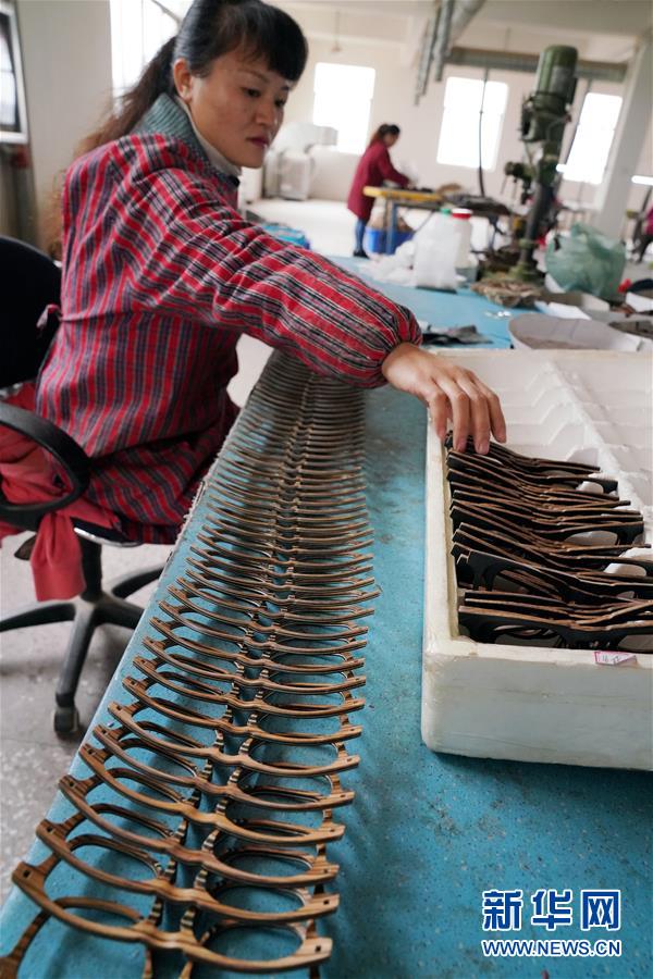 11月13日,罗小平公司的员工在加工竹木眼镜框。 一根根普通的毛竹,通过科技创意加工,制成一副副环保、轻巧、美观的眼镜框,成品全部销往欧美。 从事这项工作的就是今年42岁的罗小平。罗小平是江西省奉新县人,他2001年到温州打工,2014年携带资金和设备返回家乡,在家乡丰富的竹木资源上做文章。他创办了江西小平竹木眼镜有限公司,在全竹木镜框技术上获得突破,批量生产了全套竹木材料眼镜框架。 目前,罗小平和他的团队已申报多项国家发明专利和实用新型专利,公司发展进入快车道,带动周边村民一同致富。 新华社记者宋振平摄