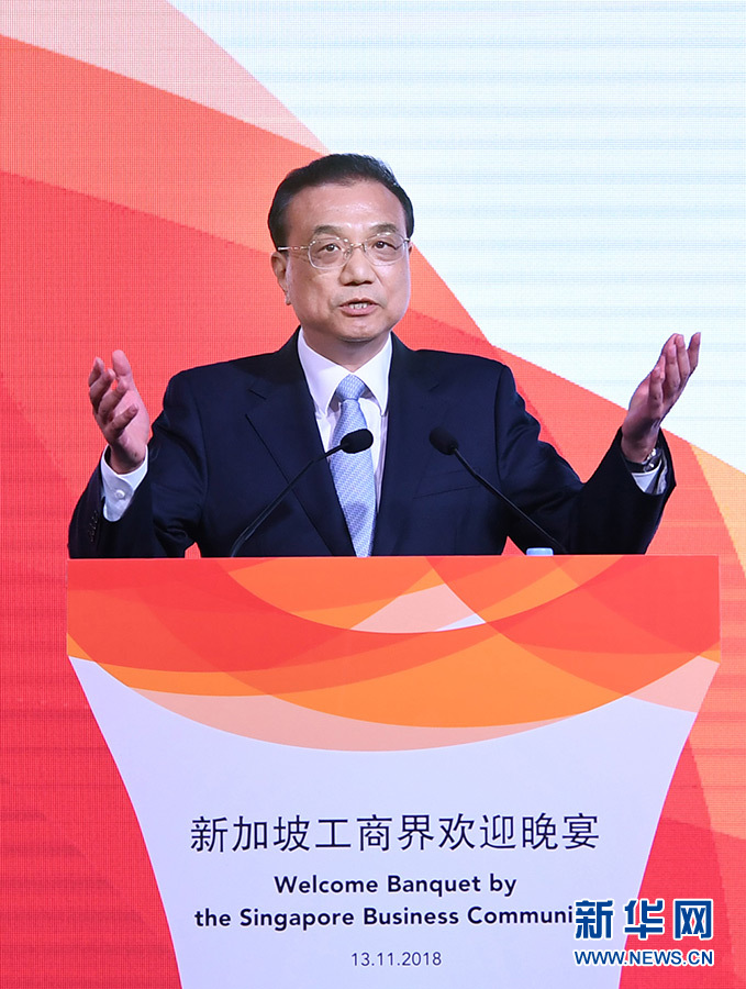 李克强出席新加坡工商界举办的欢迎晚宴并致辞