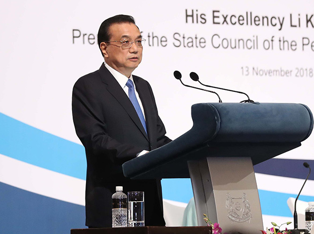 李克强在“新加坡讲座”发表演讲