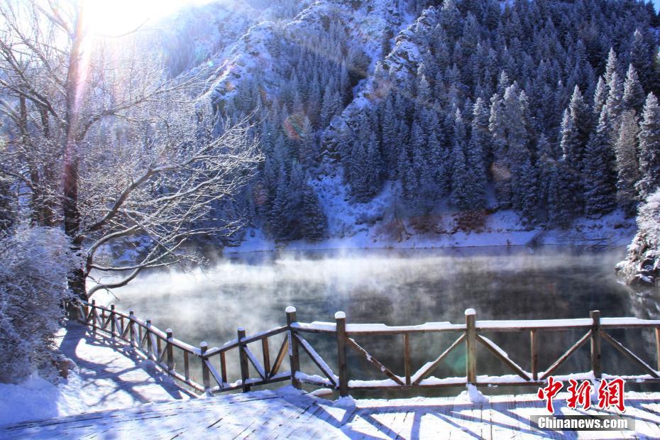 11月13日,新疆昌吉州阜康市天山天池景区笼罩在冰雪世界里,格外妖娆。受冷空气影响,天山天池景区最低气温为零下17摄氏度。中新社发 仲雁铭 摄 图片来源:CNSPHOTO