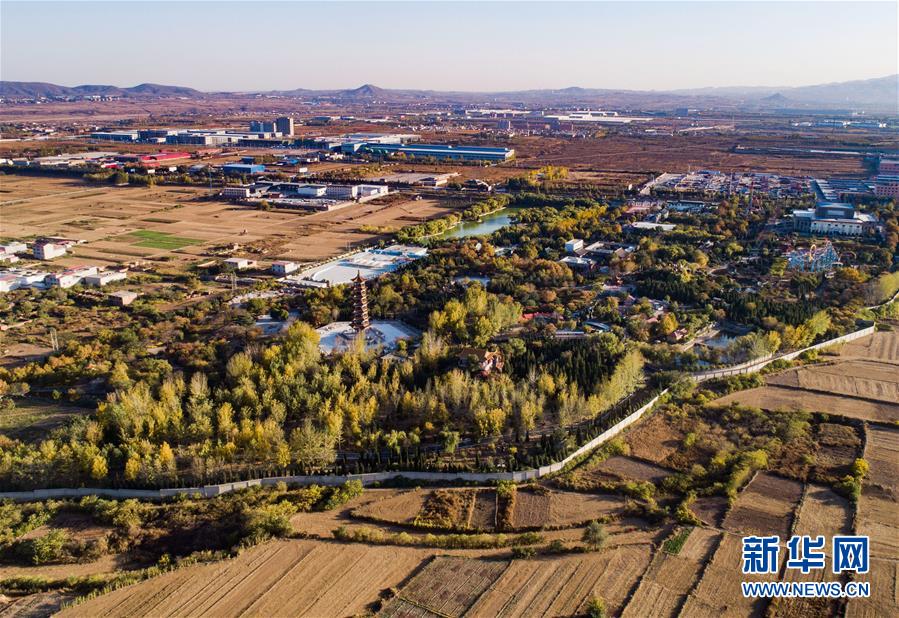 11月13日无人机拍摄的武安市东山文化公园。 河北省武安市东山文化公园原址是一片城郊荒地。近年来,武安市通过实施微地形处理、艺术景观植入等综合措施,在城郊荒地原址上建起了具有生态与景观功能的公园,成为市民和游客休闲游玩的好去处。 新华社记者 王晓 摄