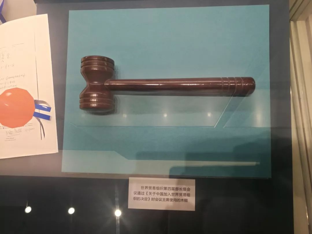 世贸组织第四届部长级会议通过中国加入世界贸易组织的决定时会议主席使用的木槌