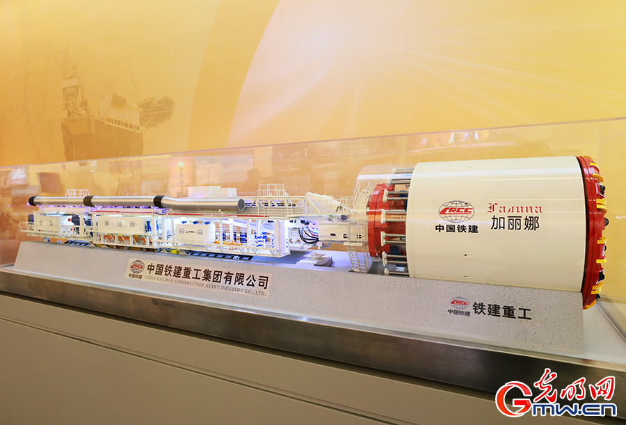 图为“加丽娜”号盾构机模型。盾构机由中国铁道建筑有限公司自主研制,出口到欧洲地区,可在极寒环境施工,目前正用于莫斯科地铁项目。光明网记者 孙佳涵/摄