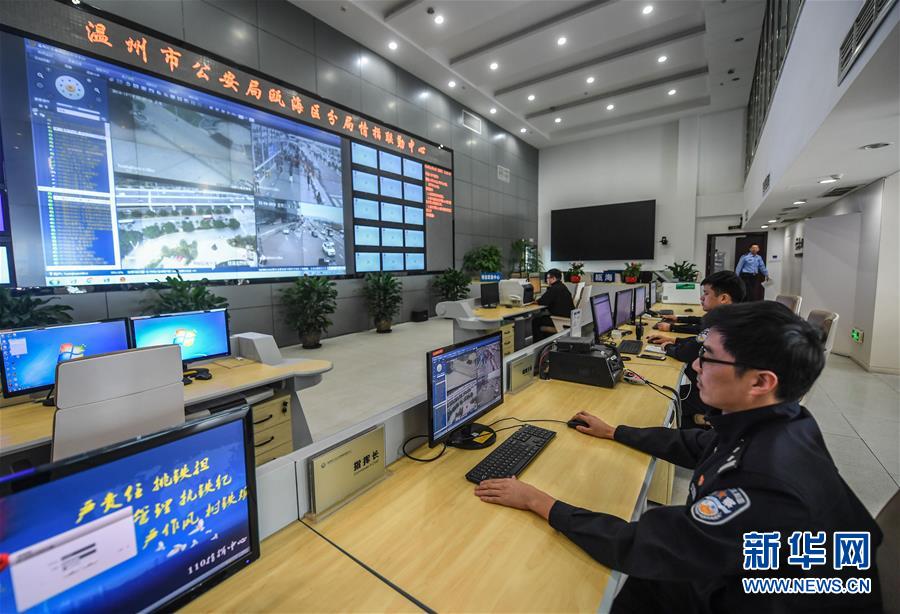 11月14日,瓯海区公安分局指挥中心内,警务人员正在后台实时监控各类动态信息。