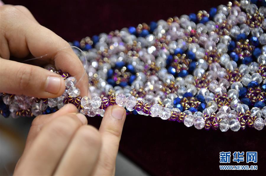 11月14日,在湖北省宣恩县荧屏特殊教育学校,聋哑学生在手工课上编织手提包。