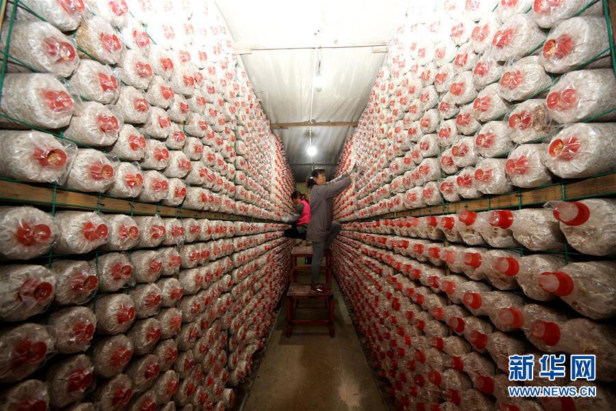 11月14日,在山东省枣庄市市中区永安镇一食用菌专业合作社,农民在暖棚内摆放杏鲍菇食用菌袋。 初冬时节,山东省枣庄市市中区农民抢抓农时,对1万多亩温室大棚内种植的越冬蔬菜、瓜果、食用菌等进行管理,暖棚内一派忙碌景象。 新华社发(孙中喆 摄)