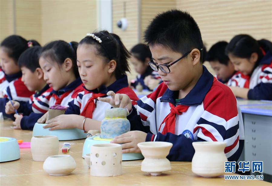 11月14日,河北省邯郸市邯山区农林路小学学生在体验陶艺制作。 近年来,河北省邯郸市邯山区农林路小学将陶艺制作列为校本课程,为喜爱陶艺的学生开办陶艺教学班,同时建立起集教学、创作、展览于一体的陶艺教育创作基地,让孩子们感受陶艺的魅力。 新华社记者 朱旭东 摄