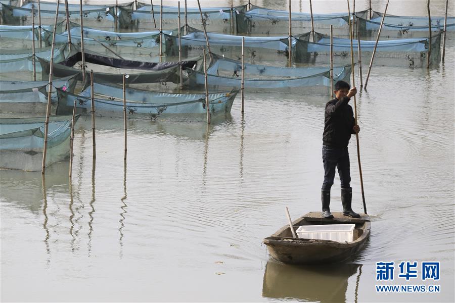 江苏淮安:网箱储养蟹 蟹农打理忙