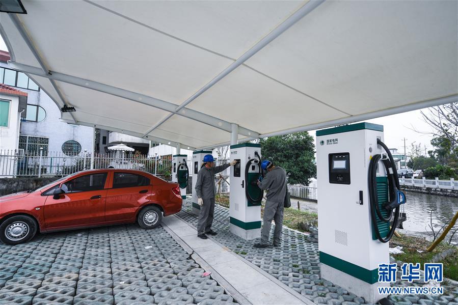 11月15日,工作人员在检查樟里村的电动汽车充电桩。从2017年开始,浙江省温州市樟里村启动美丽乡村低碳化建设。通过安装村民屋顶光伏、建设低碳科普展馆、设立电动汽车充电桩和安装雨水回收系统等方式,推广清洁低碳的生活方式,助力美丽乡村建设。新华社记者 徐昱 摄