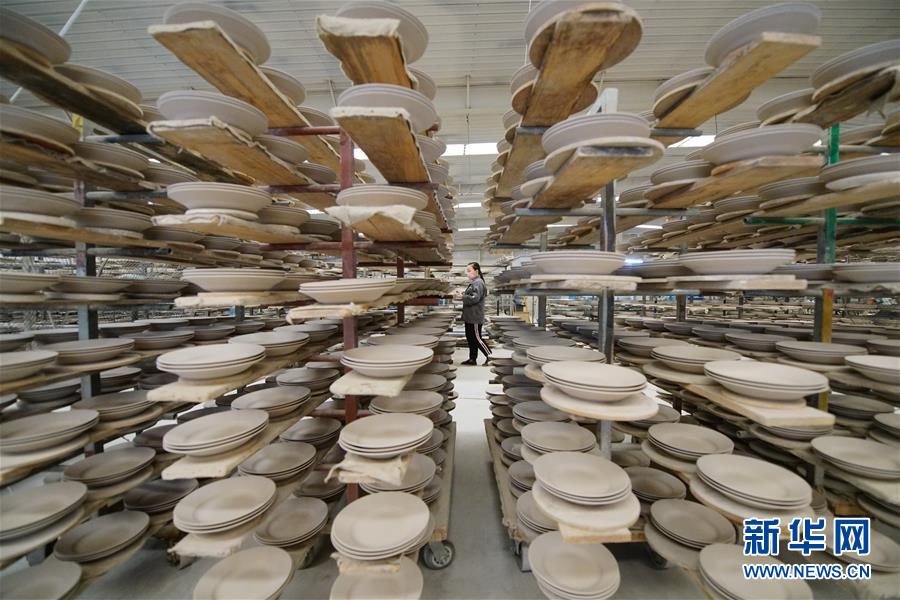 11月15日,唐山海港经济开发区一家骨质瓷生产企业的工人在模具车间工作。