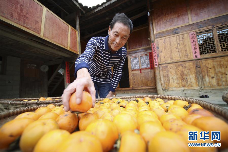 从秋天开始,贵州省玉屏侗族自治县的农民忙着采收、晾晒柿子,并加工制作成柿饼供应市场。当地手工制作的柿饼深受市场青睐,已成为农民增收致富的有效途径。