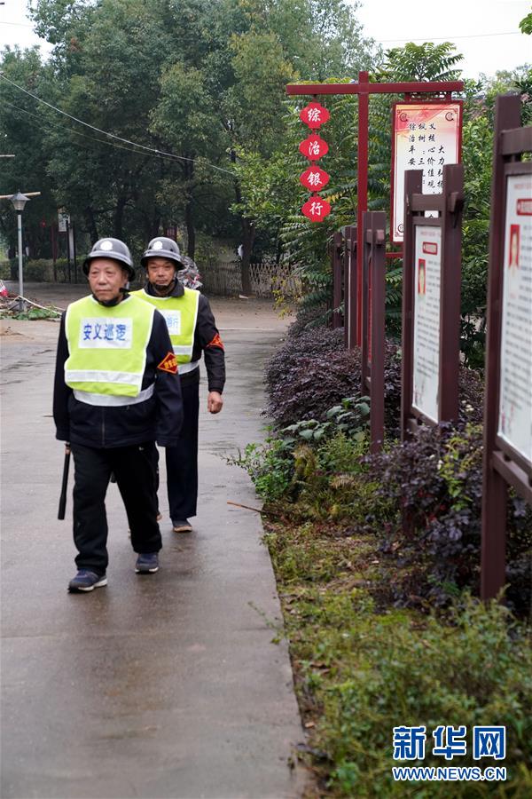 11月15日,75岁的陈友良(左)和63岁的刘祈敏在安义县东阳镇枫树自然村治安巡逻。